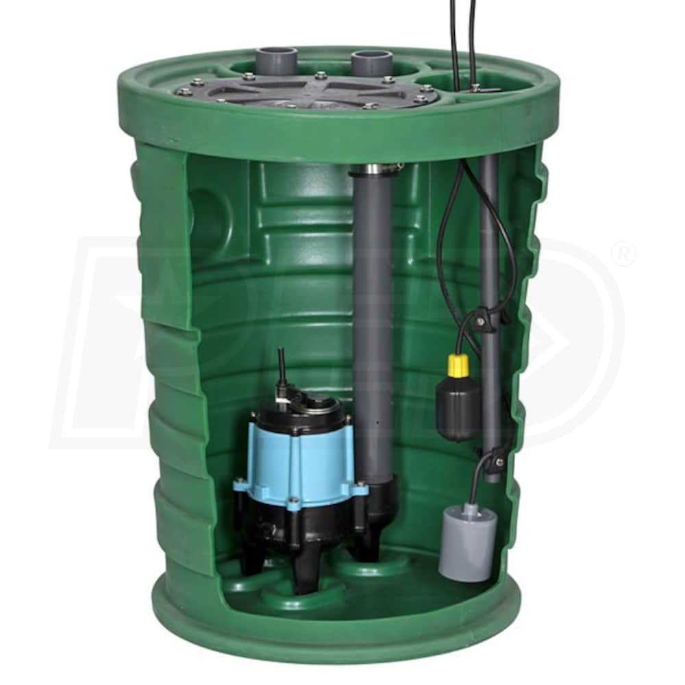 Little Giant 10SF2V2DA1 - Pit Plus® Sr. 1/2 HP Premium Simplex Sewage System w/ Tether Float Switch & Indoor Alarm (2" Vent, 2" Discharge)