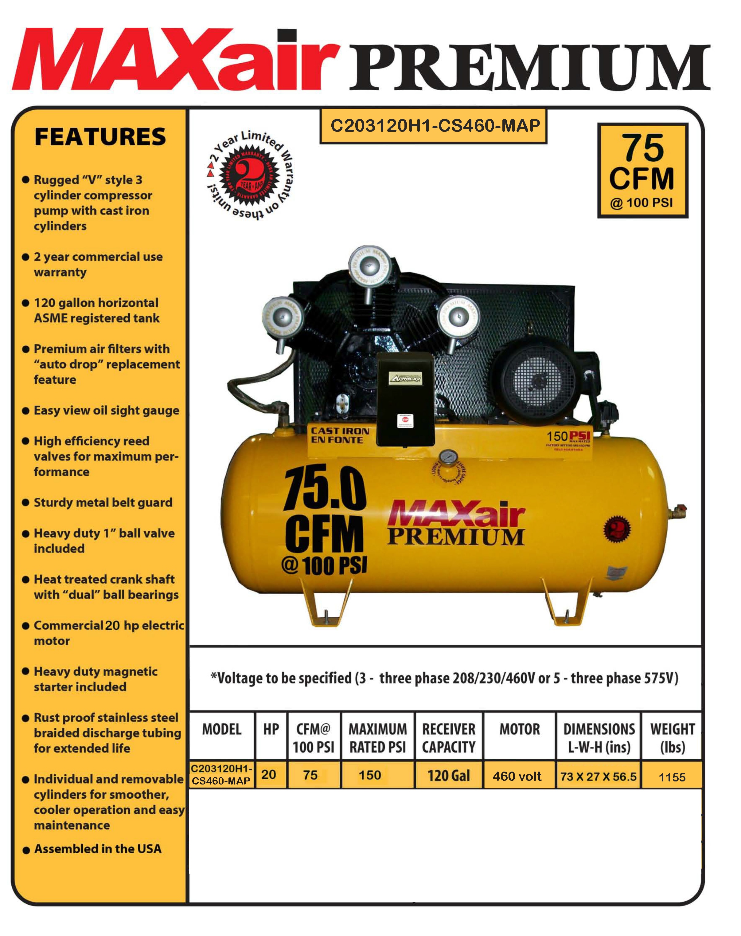MAXair Premium 20-HP 120-Gallon Single-Stage Air Compressor (460V 3-Phase)