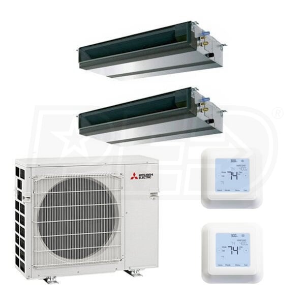 Mitsubishi Concealed Duct 2-Zone System - 30,000 BTU Outdoor - 12k + 12k Indoor - 16.2 SEER2