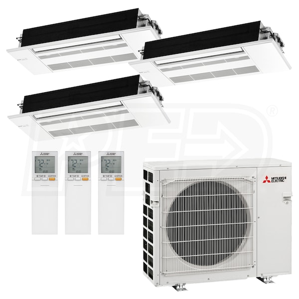 Mitsubishi One-Way Ceiling Cassette 3-Zone System - 24,000 BTU Outdoor - 9k + 9k + 9k Indoor - 20.0 SEER2