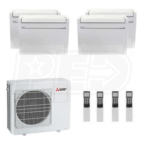 Mitsubishi Floor Mounted 4-Zone System - 42,000 BTU Outdoor - 9k + 12k + 12k + 12k Indoor - 19.7 SEER2