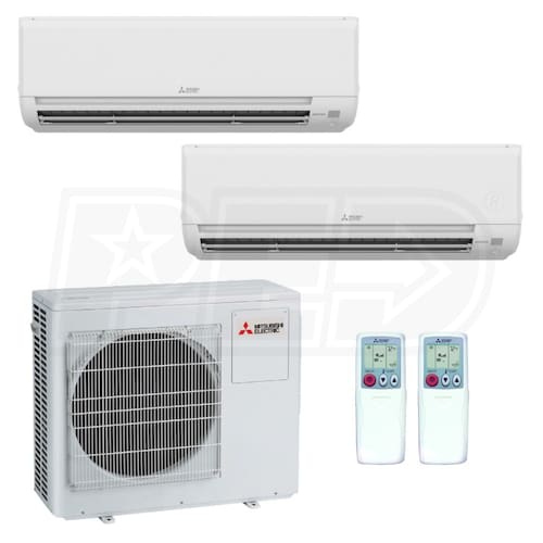 Mitsubishi Wall Mounted 2-Zone System - 20,000 BTU Outdoor - 6k + 12k Indoor - 20.0 SEER2