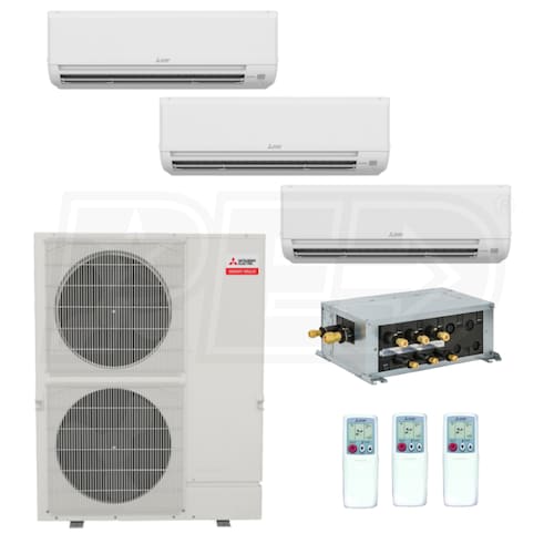 Mitsubishi Wall Mounted 3-Zone System - 36,000 BTU Outdoor - 9k + 12k + 24k Indoor - 23.0 SEER2