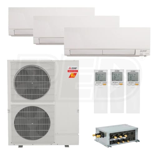 Mitsubishi Wall Mounted 3-Zone H2i System - 36,000 BTU Outdoor - 9k + 9k + 12k Indoor - 23.0 SEER2