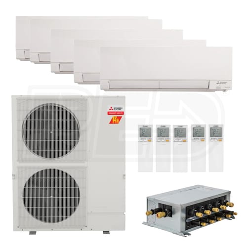 Mitsubishi Wall Mounted 5-Zone H2i System - 42,000 BTU Outdoor - 9k + 9k + 9k + 9k + 12k Indoor - 21.5 SEER2