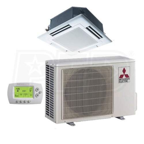 Mitsubishi - 18k BTU Cooling + Heating - P-Series Ceiling Cassette Air Conditioning System - 14.2 SEER