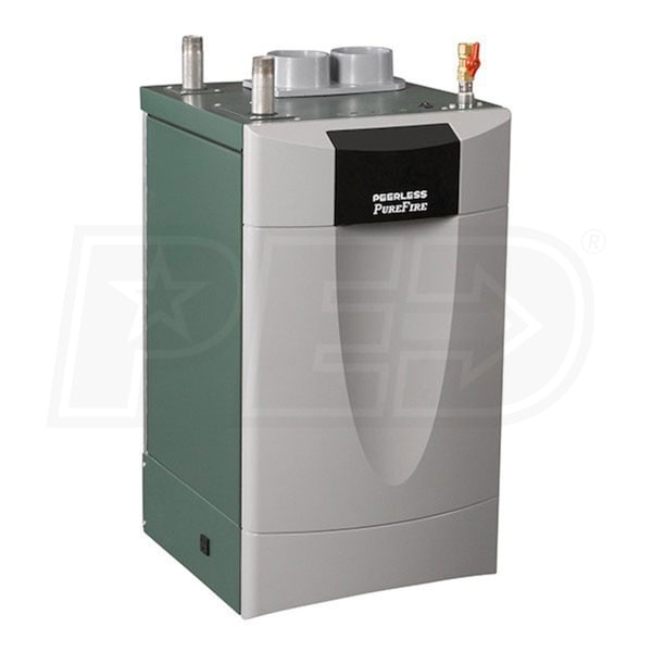 For over a century Peerless has dedicated itself to making efficient, durable boilers. The PureFire line is emblematic of these qualities. This is a direct vent, condensing boiler with DHW priority and an internal condensate system. A stainless steel burner and heat exchanger discourage corrosion and wear. The combination of first-rate components and advanced technology make the PF-110-N an excellent choice for heating your home. The PF-110-N is compact and requires zero clearance to combustibles, making installation flexible and easy. Front-mounted controls with clear error displays confer that same simplicity to maintenance. Between the efficiency-enhancing features and the quality construction, Peerless PureFire Hot Water Boilers are an attractive and reliable heating solution.