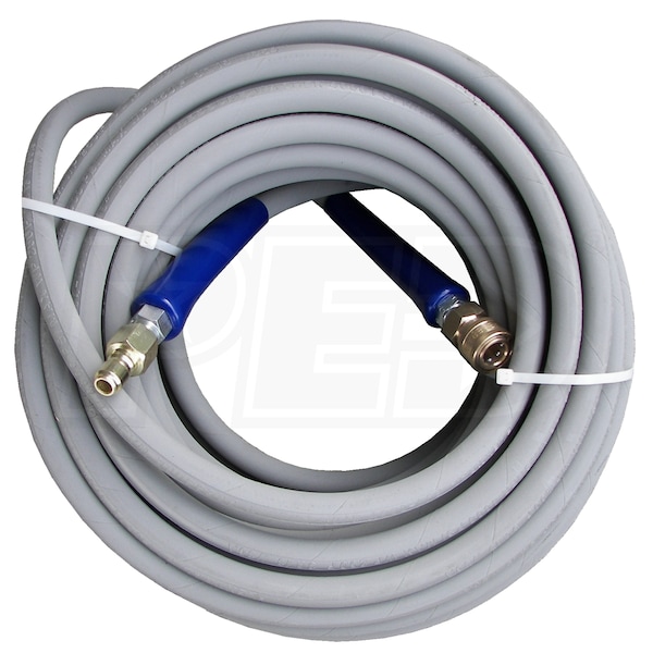 Pressure-Pro 100-Foot (3/8") 4200 PSI Gray Non-Marking High Pressure Hose w/ Quick Connectors (Hot / Cold Water)