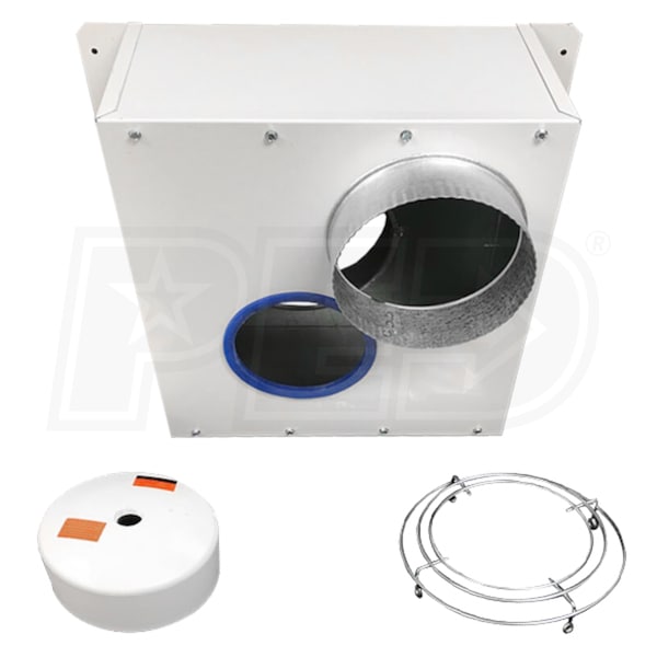 Reznor 221247 Horizontal Thru-Wall Vent Kit is a horizontal thru-wall vent kit for Reznor UEAS series gas fired unit heaters. Kit includes concentric adapter box with silicone sealing ring, bird screen, ring guard for air inlet, 4 screws, 4 spacers, and 4" PVC cap for vent condensate drain connection.