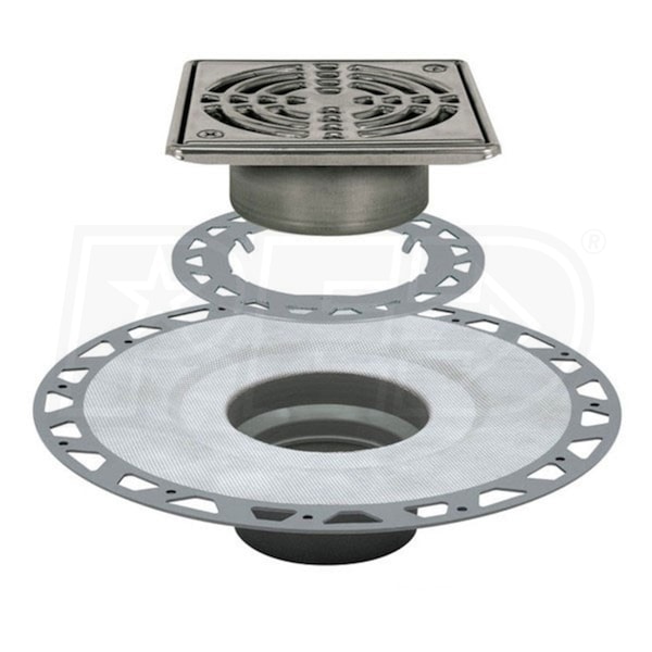 Schluter KERDI-DRAIN - PVC Flange - Drain Kit - 2" Drain Outlet - 6" Square Grate - Stainless Steel
