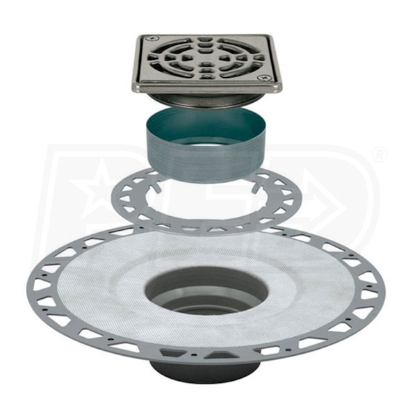 Schluter KERDI-DRAIN - PVC Flange - Drain Kit - 2" Drain Outlet - 4" Square Grate - Tileable Covering Support
