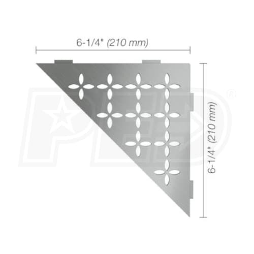 Schluter SHELF-E - Triangular Corner Shower Shelf - Floral - Brushed Stainless Steel