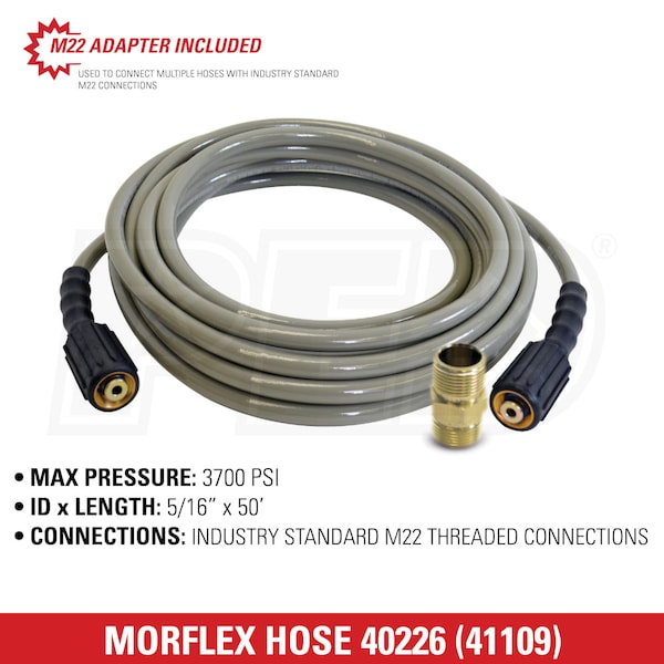 Simpson MorFlex 50-Foot (5/16") 3700 PSI High Pressure Hose w/ M22 Connectors