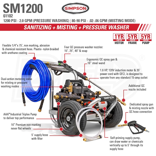 Simpson Professional 1200 PSI (Electric - Cold Water) SM1200 Mister Sanitizing Pressure Washer