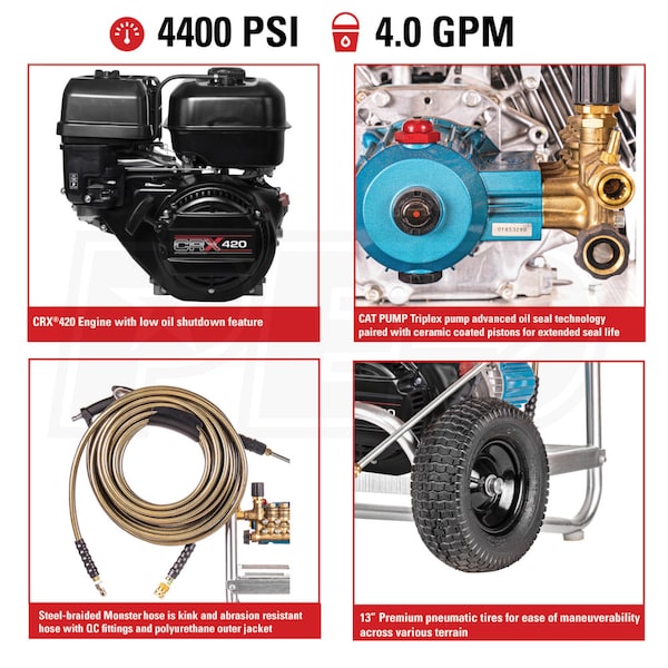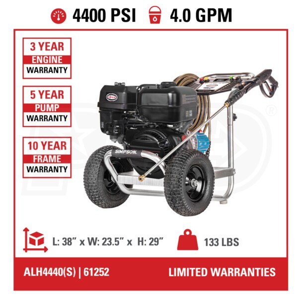 Simpson Professional ALH4440 4400 PSI (Gas - Cold Water) Aluminum Frame Pressure Washer w/ CAT Pump & CRX Engine