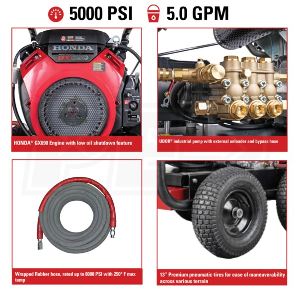 Simpson SuperPro SW5050HUGL 5000 PSI (Gas - Cold Water) Pressure Washer w/ Udor Pump & Electric Start Honda GX690 Engine