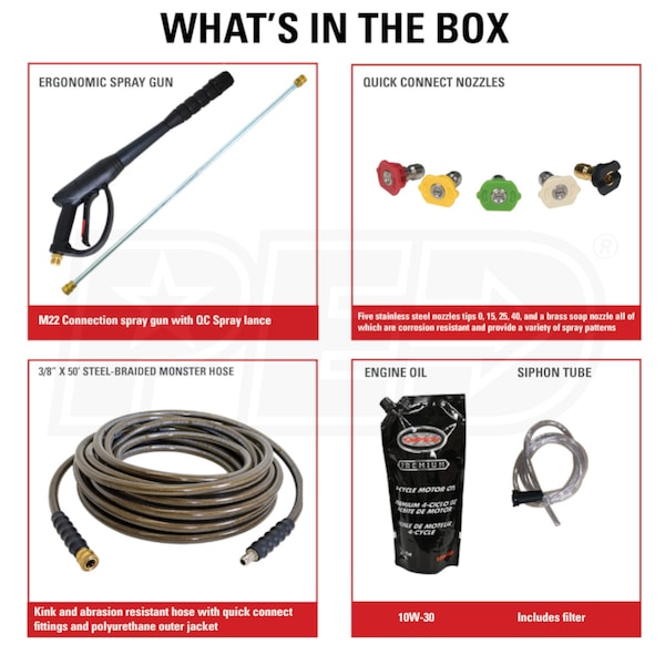 - 7-yr on pump & 10-yr on frame, 3-yr on Honda engine, 90-days on accessories