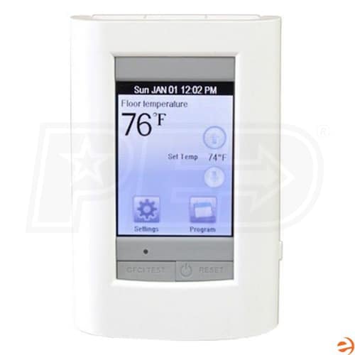 Designed with a large interactive color touchscreen, the SunTouch 500750-SB SunStat View Thermostat is a 7-day programmable thermostat with a variety of programming options. This dual-voltage 120/240 volt thermostat can drive up to 10 SunStat Relays. SmartSense Technology automatically adjusts floor warming systems to provide maximum comfort at scheduled times.