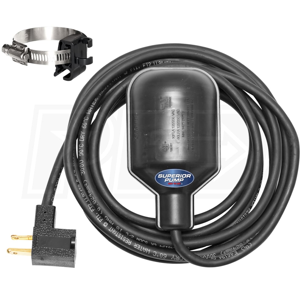 Superior Pump Wide Angle Tether Float Switch (120V 10A) w/ 25' Cord & Plug