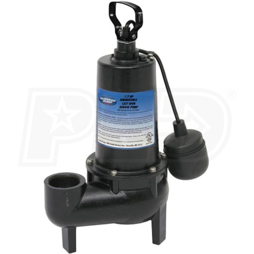 Superior Pump 93501 - 1/2 HP Cast Iron Sewage Pump (2") w/ Piggyback Tether Float (Scratch & Dent)