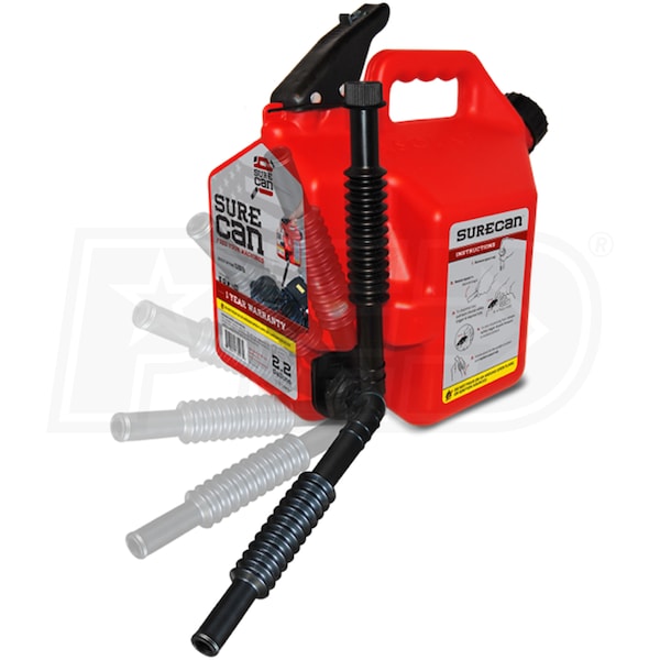 SureCan 2.2 Gallon Plastic Gas Can w/ Flexible Rotating Nozzle