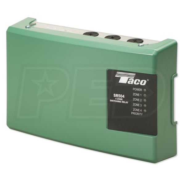 Taco's SR504-4 is a four zone pump switching relay. With universal thermostat compatibility, it is designed to integrate quickly and effortlessly into any hydronic system, bringing Taco reliability to your zoned operations. The SR504-4's enclosure is unobtrusive and easy to mount in tight spaces, and the PC board was designed for quick maintenance and clean, simple wiring.