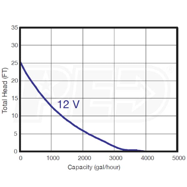 - At 12V move up to 4000 GPH @ 0' & 1400 GPH @ 10'