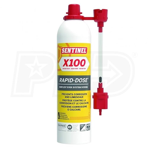 One Quart of Sentinel X100 is needed to treat your standard residential system of 25 gallons. Larger systems should be dosed at 1% of system water.