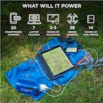 - Charges on AC, 12V or Solar power (Solar Panels Not Included)