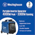 Westinghouse iGen4000cv - 3300 Watt Portable Inverter Generator w/ CO Sensor (49-State)