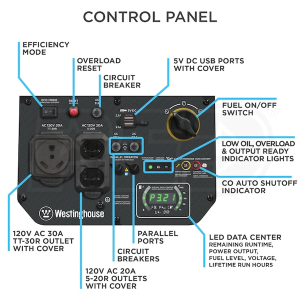 - Shuts the generator down when unsafe levels of CO are present
