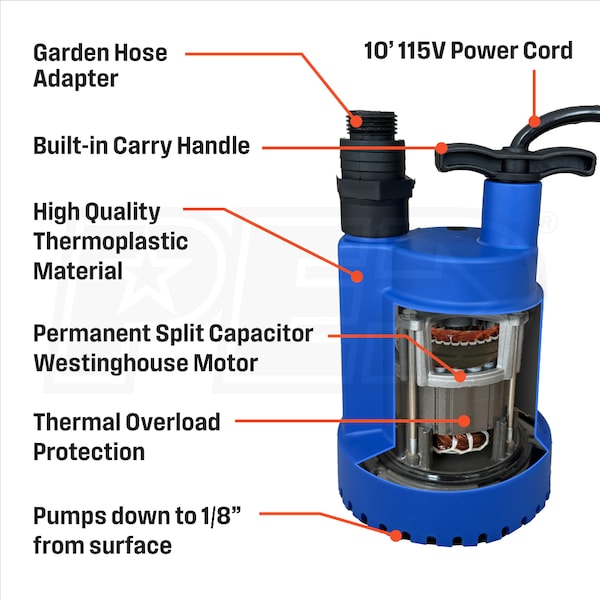 Westinghouse 1/4 HP 25 GPM (1") Thermoplastic Submersible Utility Pump