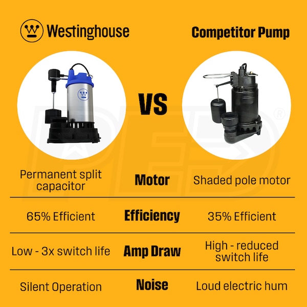 - Westinghouse 1/2 HP Submersible Automatic Sump Pump