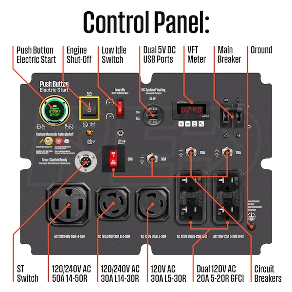 - 30-Amp 120/240V (L14-30R) & 120V (L5-30R) Receptacles