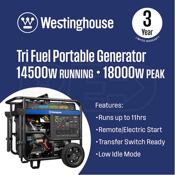 - Westinghouse WGen14500TFc Tri-Fuel Portable Generator (49-State)