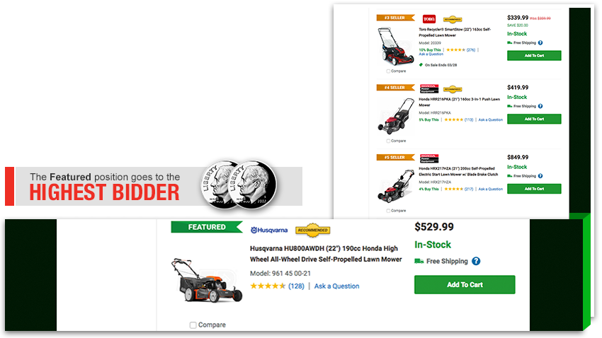 Securing the featured spot is simple. Just enter a bid for every product that you want to promote. The opening bid is 20 cents.